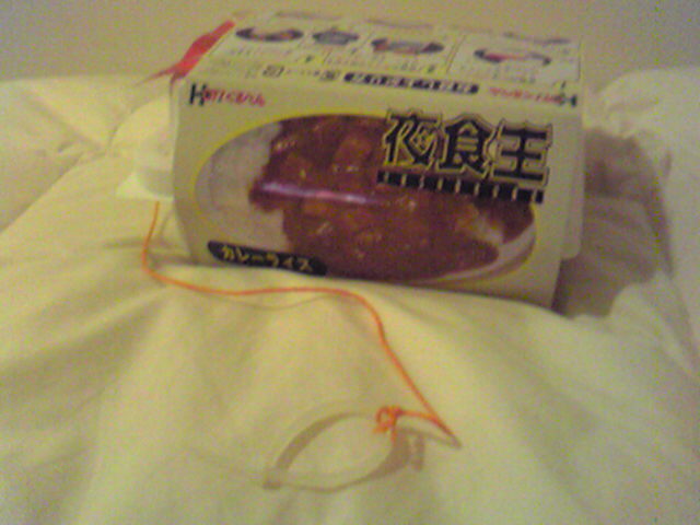 こいつの食べ方は特殊で、まずは容器から飛び出しているヒモを引っ張ります。